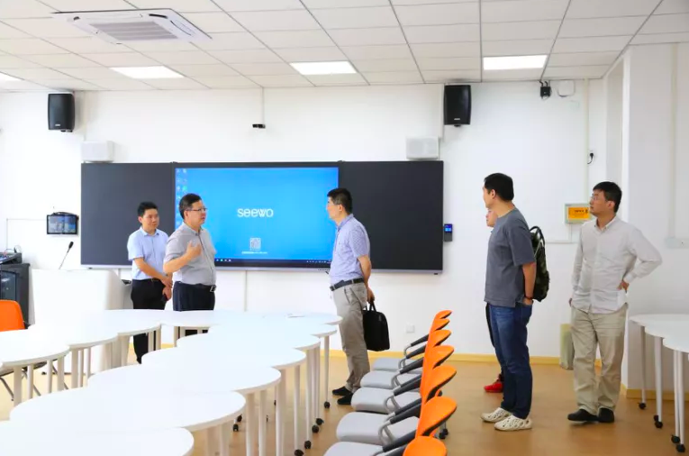 期間,兩家分中心校領(lǐng)導對總校一直以來(lái)的支持和指導表達感謝,介紹了本分?!笆奈濉敝腔坌@信息化建設規劃的相關(guān)工作。肖君主任表示總校信息中心也將與分校共同探討如何共建智慧教室,最大程度地發(fā)揮智慧教室的使用功效,通過(guò)技術(shù)服務(wù)、現場(chǎng)支持及課程培訓等方面加強對分校的服務(wù),齊心協(xié)力與分校一起共同建設上海開(kāi)放大學(xué)智慧校園辦學(xué)體系。